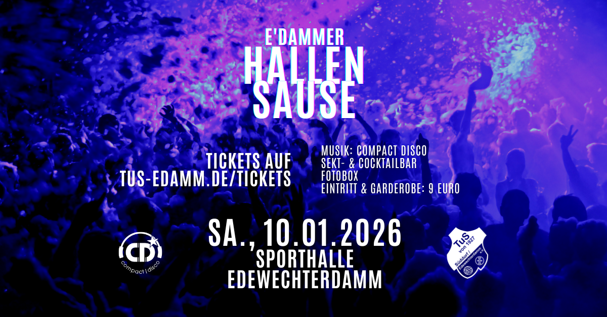 Wie immer wird die Compact Disco mit ihrer Musik für beste Stimmung in E’dammer Sporthalle sorgen. Auch Fotobox, Sekt- und Cocktailbar sind 2026 wieder mit dabei.